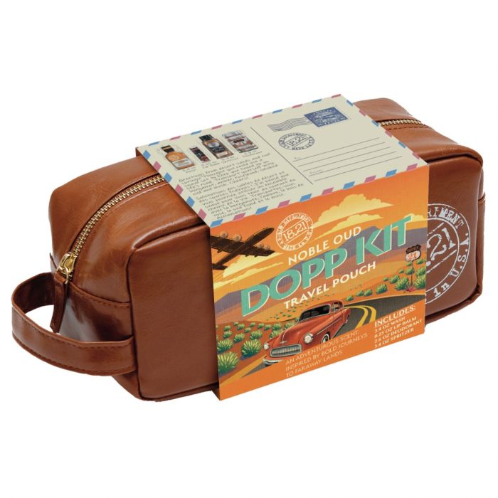 Unleash the spirit of a bygone era with the 18.21 men's grooming dopp kit. Encased in a stylish leather pouch, this vintage-inspired set is tailored for the distinguished traveler, ensuring you stay fresh, polished, and ready for any adventure.