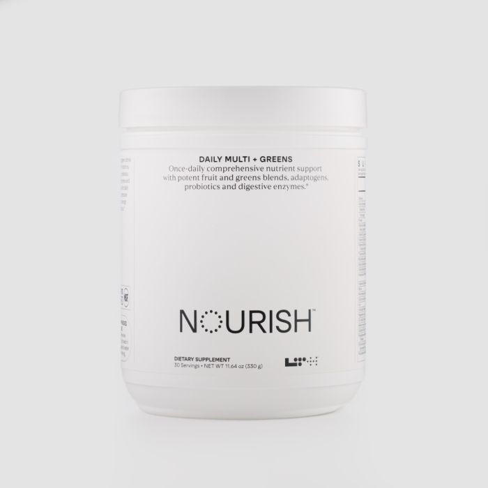Nourish Daily Multi+Greens makes it easy to give your body everything it needs — all in one nutrient-packed greens drink. Designed to fill common dietary gaps, it combines essential vitamins and minerals with adaptogens, probiotics, and antioxidants to support stress management, digestion, and daily energy. With clean, bioavailable nutrient forms and no proprietary blends, Nourish delivers complete, transparent nutrition that tastes great and works harder for you.*