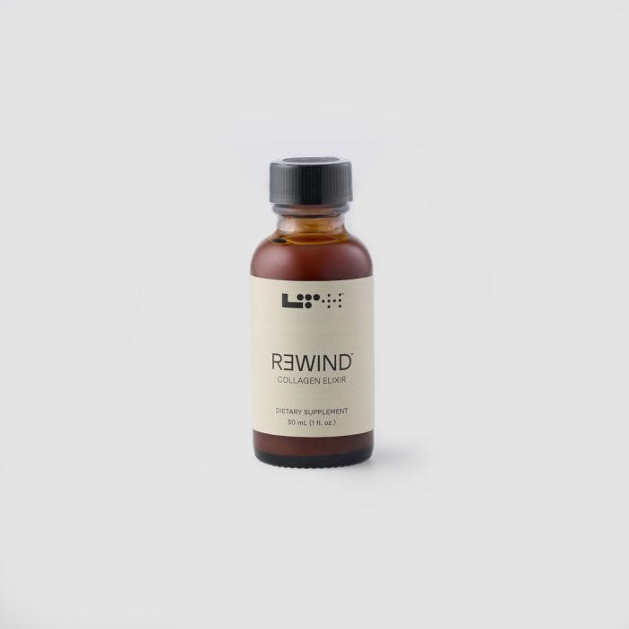 Healthy skin starts from within — and so does joint comfort. Rewind Collagen Elixir delivers a clinically balanced blend of bioactive collagen peptides, vitamins, and antioxidants that rejuvenate your skin’s structure while helping to maintain smooth joint movement.* With Verisol® and Fortigel® collagen, 200 mg of hyaluronic acid, and vitamin C for antioxidant protection, Rewind helps you glow, move, and feel your best — naturally.*