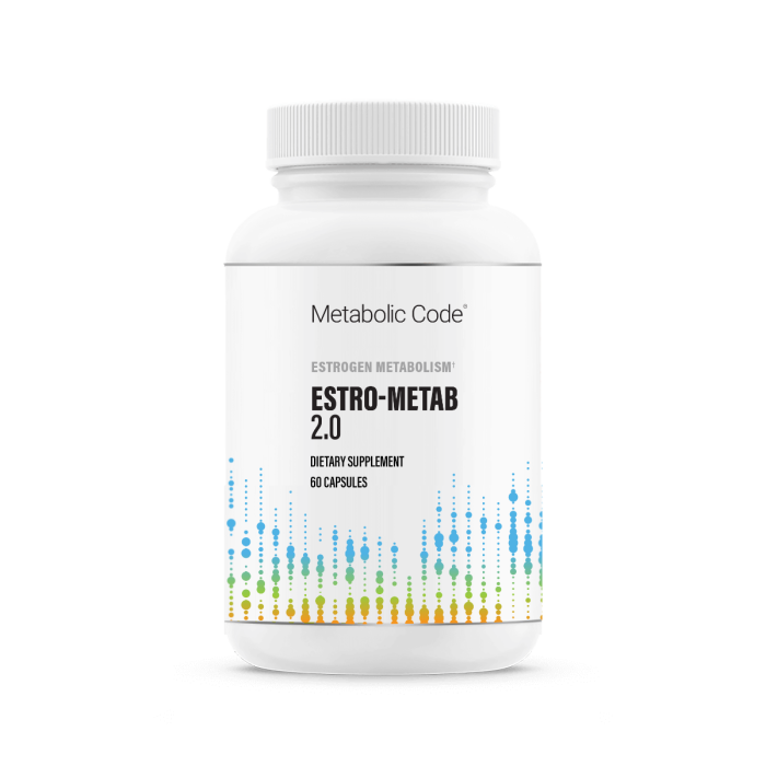 EstroMetab 2.0 is a botanical and nutraceutical formulation that helps with estrogen metabolism in women and in men. helping them to maintain a healthy body composition and proper estrogen metabolite balance. EstroMetab 2.0 contains the herb kudzu (Puerari lobata) root (std. 40% isoflavones) and the nutrient DIM (3,3? diindolylmethane), which both help to improve estrogen (estrone, estriol, estradiol) metabolism. Grape seed (Vitis vinifera) extract (std. 95% proanthocyanidins PCOs) is an important antioxidant and has aromatase inhibiting properties, which helps process estrogens in men and women. Supports TRIAD 5 hormonal/estrogen metabolism issues for women and men.