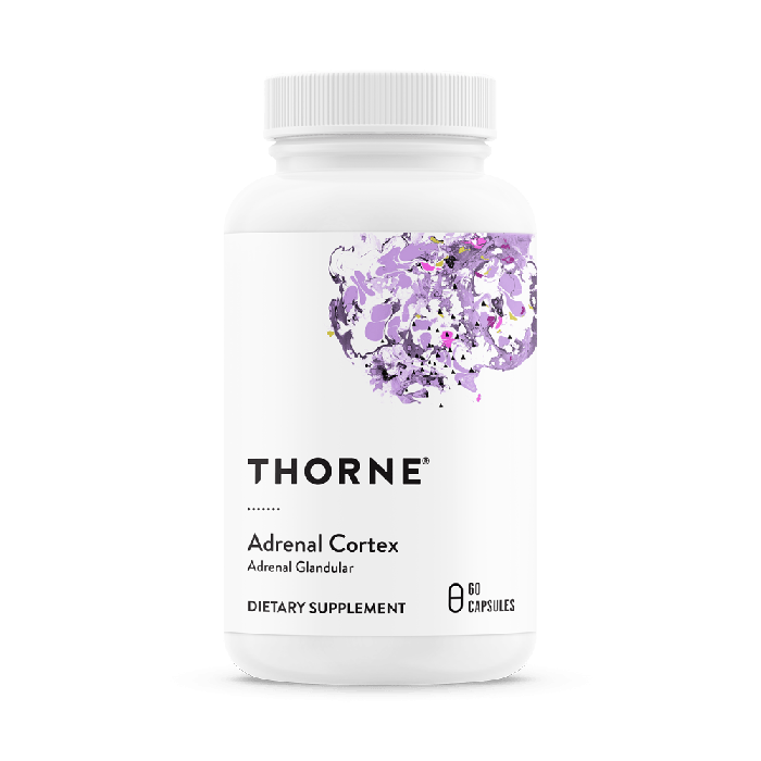 The hormones produced in the adrenal cortex are necessary for glucose metabolism, immune function, normal blood pressure, and more.* In today's "high-stress" world, lifestyle habits that deprive us of adequate rest and exercise, along with dietary habits fraught with caffeine and refined sugars, can, over time, take their toll on the adrenal glands. Extracts from adrenal cortex tissue can play a valuable role in supporting healthy adrenal glands – and help maintain immune function and promote an energetic feeling.* Glandular extracts also support healthy levels of cortisol.* Thorne's Adrenal Cortex provides extracts of adrenal cortex tissue for focused support of normal adrenal function.*