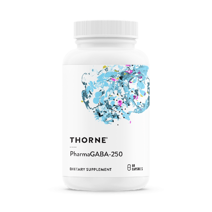 Gamma-aminobutyric acid (GABA) is a major calming brain chemical or neurotransmitter.* Clinical studies show that the natural form of GABA that is in Thorne's PharmaGABA can decrease the brain's stress-related beta waves and increase the production of its alpha-waves, creating a profound sense of physical relaxation while maintaining mental focus.* Other studies have shown reduced pupil diameter, heart rate, and two natural biomarkers of stress – salivary cortisol and chromogranin A – all signs of relaxation.* In addition, studies also indicate GABA can enhance sleep.* In a head-to-head, double-blind trial of natural PharmaGABA versus synthetic GABA, the synthetic GABA did not demonstrate these positive effects.* PharmaGABA-250 offers 250 mg of natural GABA per capsule, while PharmaGABA-100 offers 100 mg per capsule. Both are non-habit forming.