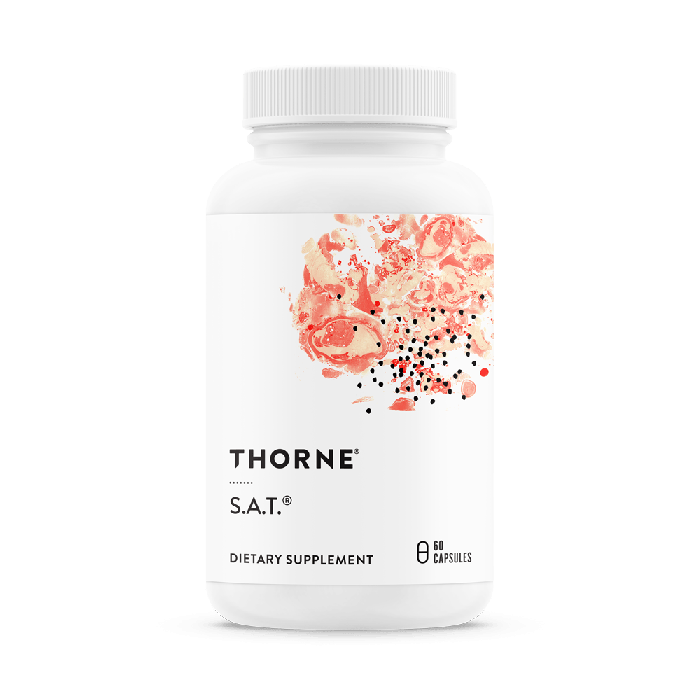 Each of the three ingredients of Thorne's S.A.T. supports good liver health.* Silymarin (milk thistle) contains important antioxidant constituents that protect liver cells from free radical damage, strengthen liver cell membranes, and help maintain the liver's own built-in antioxidant system.* Artichoke (Cynara scolymus) has a long history of use for hepatic support.* Turmeric has been used traditionally in both Chinese and Ayurvedic systems of medicine to support liver function.* The primary efficacious agent in turmeric is curcumin. S.A.T. offers both silymarin and curcumin complexed to phospholipid compounds (as Siliphos® and Meriva®, respectively) to optimize their absorbability and hepatoprotective effects.*