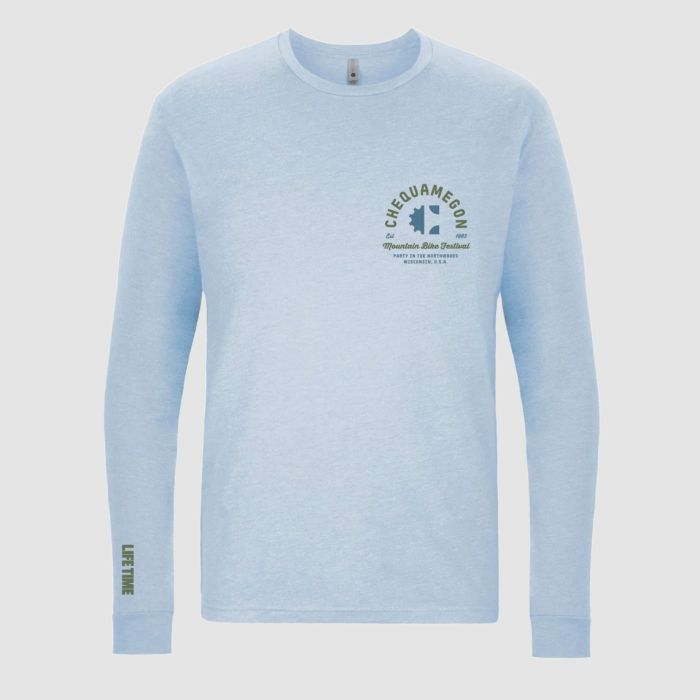 The Chequamegon Blue Long Sleeve Tee offers soft, all-season comfort with a relaxed fit and bold front graphic?ideal for cooler days on the trail or casual wear.